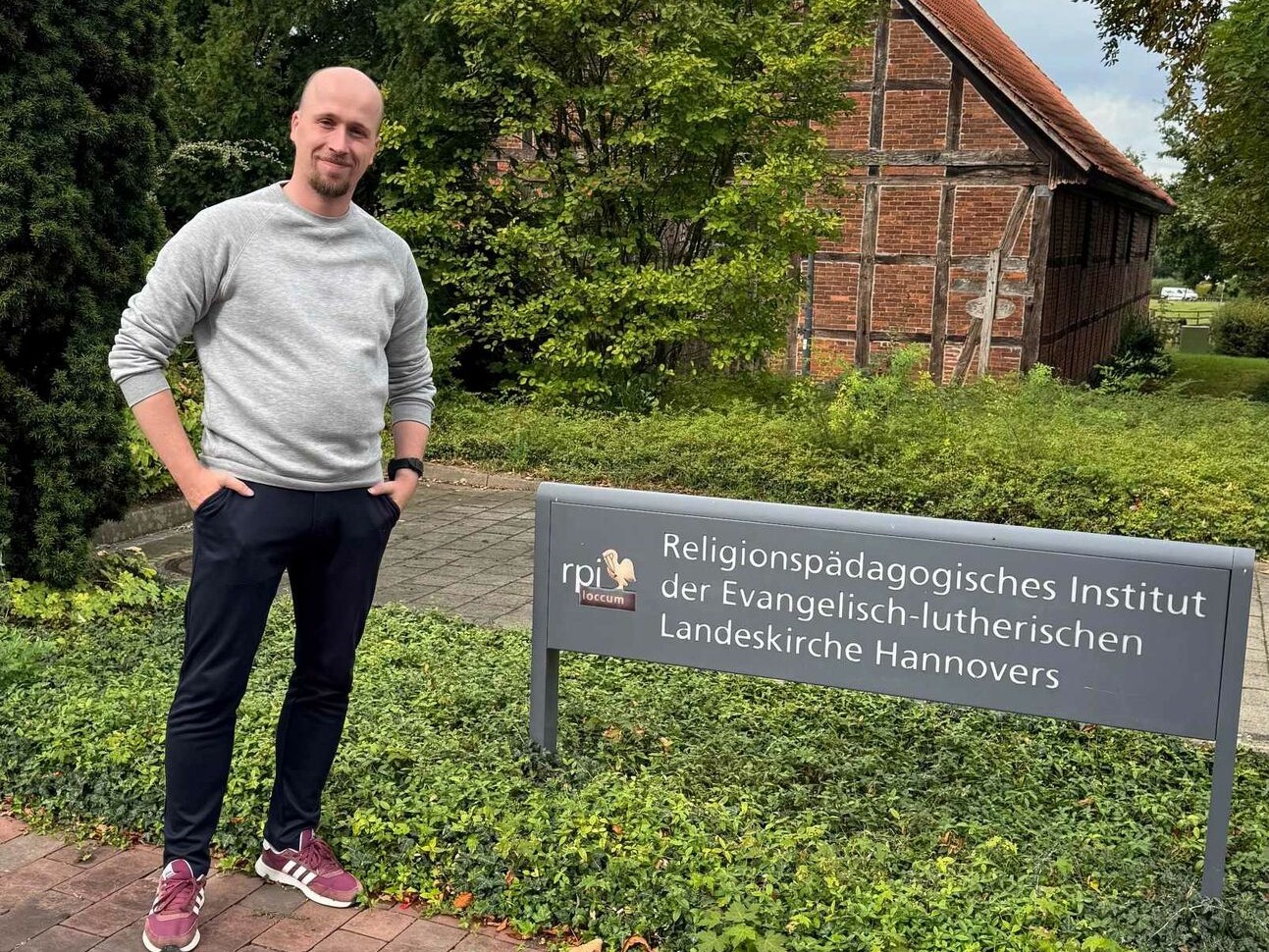 Heute brennt er für die Kirche und die Menschen vor Ort. In seiner Vikariatsgemeinde, der Lamberti-Gemeinde in der Hildesheimer Neustadt, ist er seit März 2025 tätig, lernt das Pfarramt kennen durch das Erproben von Kasualien, unterrichtet und arbeitet mit Konfirmanden und plant neue Gottesdienstformate. „Es macht mir Freude, in der Gemeinde tätig zu sein“, sagt er.